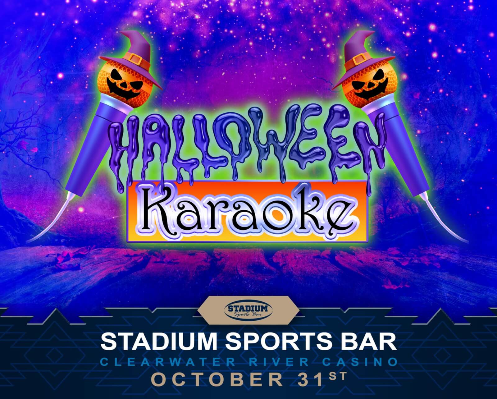 Visit the Stadium Sports Bar at the Clearwater River Casino for Halloween Karaoke on Friday, Oct.31st from 10pm to 1am Free Entry Spooky Drink Specials 21+