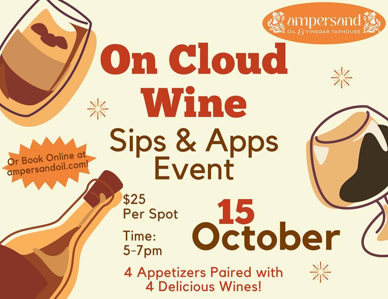 Ampersand invites you to “On Cloud Wine” Wine tasting event where you will be treated to 4 wine tasting expertly paired with our House Made Appetizers.