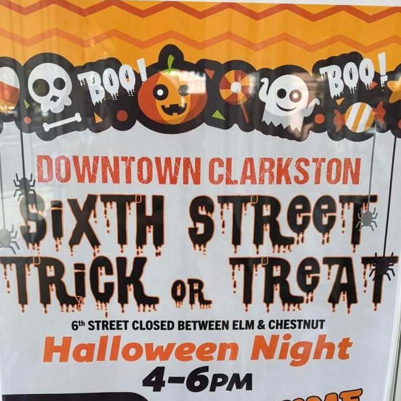 Come trick or treat with us in downtown Clarkston where 6th Street will be closed between Elm & Chestnut. There’s a costume contest and music provided by McVey Entertainment Group.